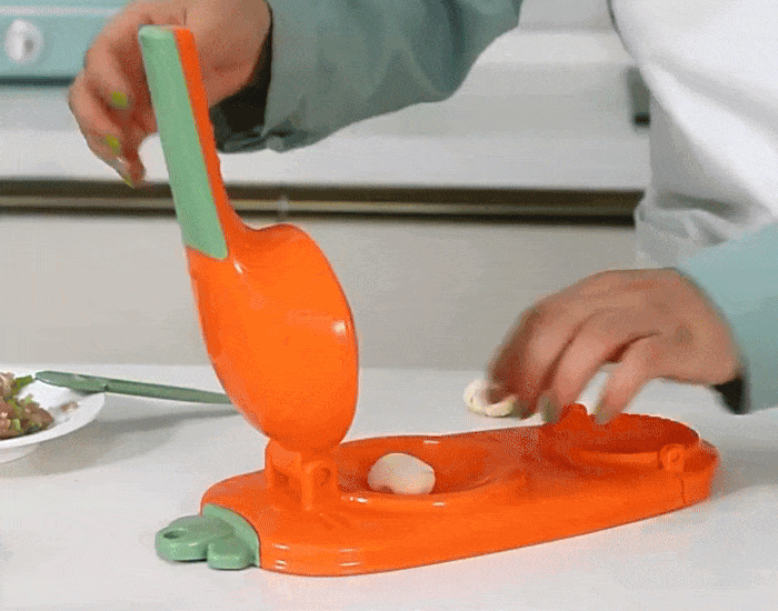 This dumpling maker proved to be highly effective for us. My wife enjoys preparing dumplings and empanadas, and this handy device efficiently flattens the dough and wraps it perfectly around the filling. To ensure a snug fit, it's essential to place the gadget on a stable, non-slip surface. Cleaning it in the sink is a breeze, leaving it ready for future use. We hope it remains durable for a long time.