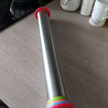 I’m going to go ahead and give it 5 stars even though I haven’t used it yet. The reason for the 5 stars: – The rings are made of substantial, hard plastic. I was afraid they would be flimsy. They are not. – Other comparable products have 3 rings, this has 4. The 4th lets you make pizza dough (sizes are 1/16″, 1/8″, 1/4″, & 3/8″). – You can’t fill it with water (like another product does) but you can put in refrigerator which will make working with dough better. The stainless steel should hold the cold quite well. – I mostly got it because I make cookies for the grandkids and getting even dough thickness makes baking more consistent (less burned cookies). I think it will be great for that. – Very substantial roller. I expect you can exert substantial pressure on dough when rolling (like when dough may still be cold and a little less pliable than you expected)