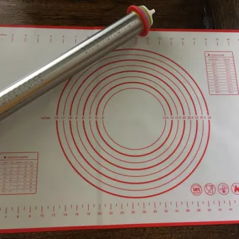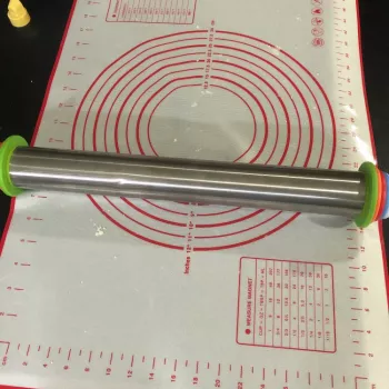 I love this rolling pin! It makes rolling my pie crusts and cookies so easy and they come out perfectly even every single time. The mat is a nice bonus coz it gives me a specific working area and the measurements printed on it are helpful too. I highly recommend it!