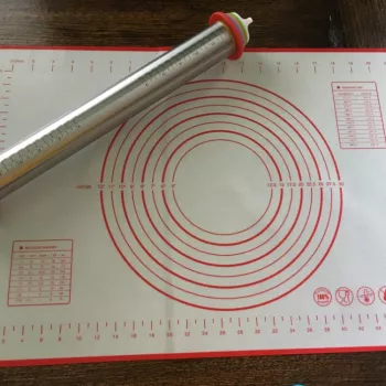 Good deal for this set with silicone baking mat, adjustable length roller, and thickness adjustment rings. I recently purchase just the mat at the store for $10. So for $5 more, I got this really nice adjustable roller. I like that the mat is silicone. I’ve been replacing all my kitchenware with silicone products. The roller was nice to use when I made dough this past weekend.