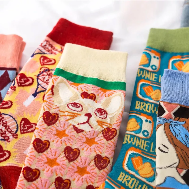 What sets these socks apart is their enchanting design, featuring cute cartoon cats and heart lattice food patterns that capture the essence of youthful, artistic expression. They are not just socks; they are a statement of fun, fashion, and comfort. The thick, standard thickness material provides ample warmth without compromising on style, making them ideal for anyone looking to add a dash of whimsy to their wardrobe.