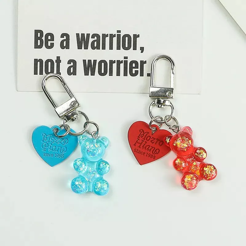 Introducing our latest addition to your daily essentials – the Cute Cartoon Bear Heart Keychain. This charming accessory combines both whimsical design and practicality, making it an ideal companion for anyone who loves to add a touch of cuteness to their everyday life. Crafted with high-quality zinc alloy and resin, this keychain is not only durable but also exudes a playful elegance that is hard to resist.