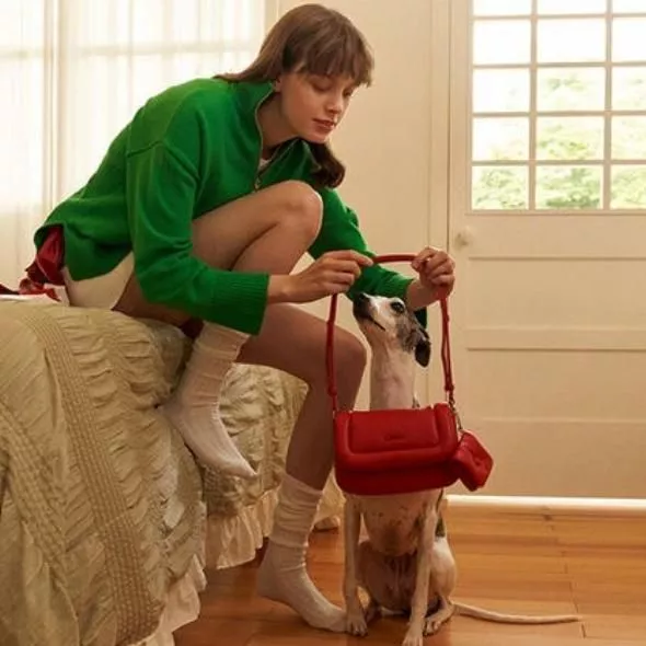 This lovely handbag caught my eye because of its vibrant red color. It's the perfect size – not too big, not too small – just right for all my essentials.