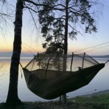 Used this hammock for 4 nights in the Olympic Nation Park, it was light, easy to set up, and very comfortable. I’d give it 5 stars but the tree straps that come with it are a little jinky and too short for most trees in Western Washington. Before I went on my trip I ordered different 20’ long straps.