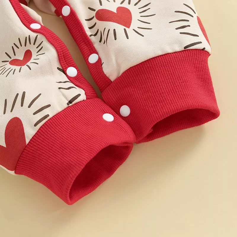 Introducing the perfect blend of cuteness and comfort for your baby’s Valentine’s Day – our Heart Print Newborn Baby Romper. Designed to keep your little one cozy and stylish, this jumpsuit is a must-have for celebrating love in the sweetest way possible. Its charming heart print and long sleeves make it an ideal choice for capturing those precious moments that you’ll cherish forever.