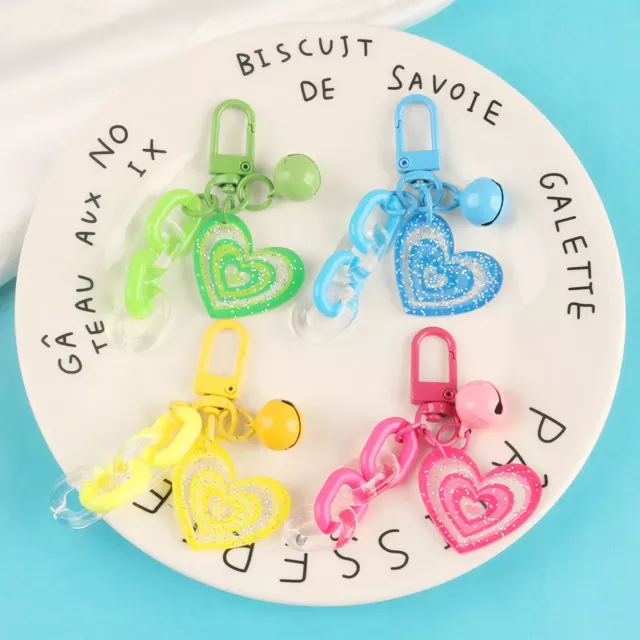 Our keychain boasts a unique blend of durability and design, featuring a vibrant acrylic chain link with a gold-tone metal bell and heart-shaped pendant that catches the eye. The zinc alloy material ensures long-lasting wear, while the gold and silver color options provide versatility to match your personal style. Whether it’s attached to your Bluetooth headset case, keychain, bag, or phone, this accessory brings a touch of glamour to your daily life.