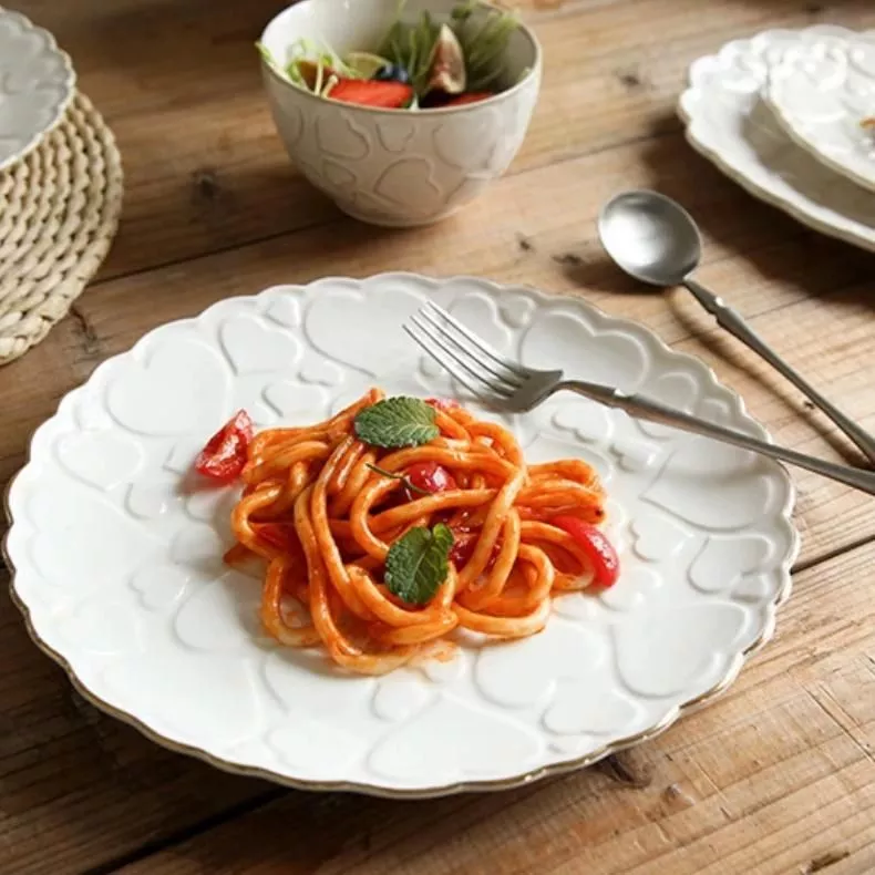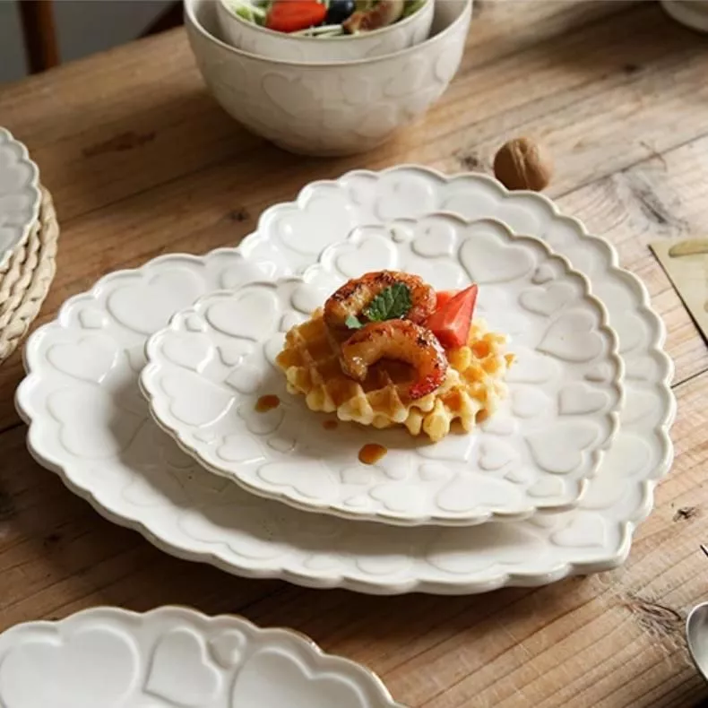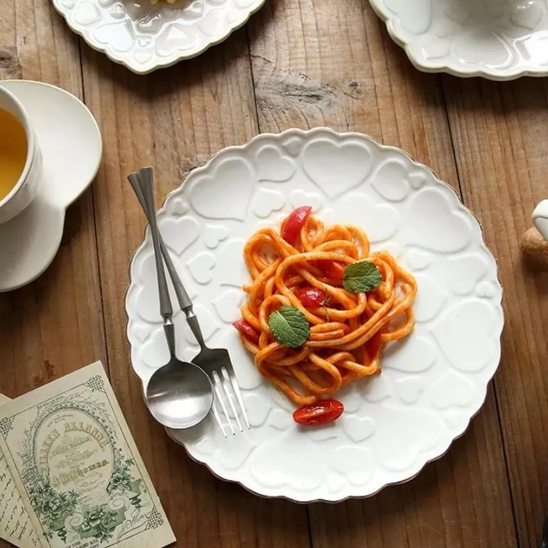 Heart-Shaped Ceramic Plate for Western Cuisine