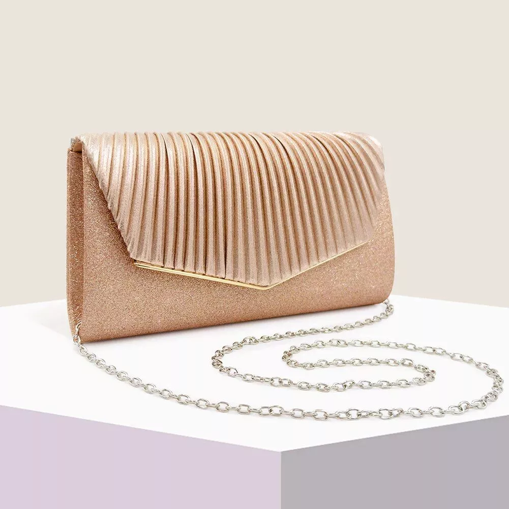 Made with premium PU and adorned with a shiny surface decoration, our evening clutch is not just a bag; it’s a statement. The durable, waterproof, and wear-resistant materials ensure your bag remains pristine, event after event. The envelope style, complemented by a luxurious metal chain, conforms to the latest fashion trends while offering versatility in how you choose to wear it. Available in stunning shades of Champagne, Gold, and Silver, there’s a perfect match for every outfit and mood.