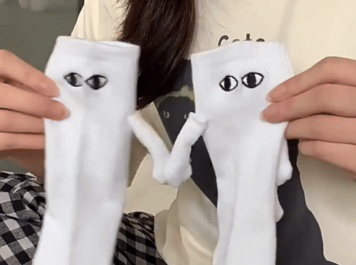 Wearing these socks never fails to brighten my day. I love the hand-holding feature and how they can interact with other sock pairs. I gave the second pair to a coworker, and now we enjoy high-fiving throughout the workday—truly a mood booster!