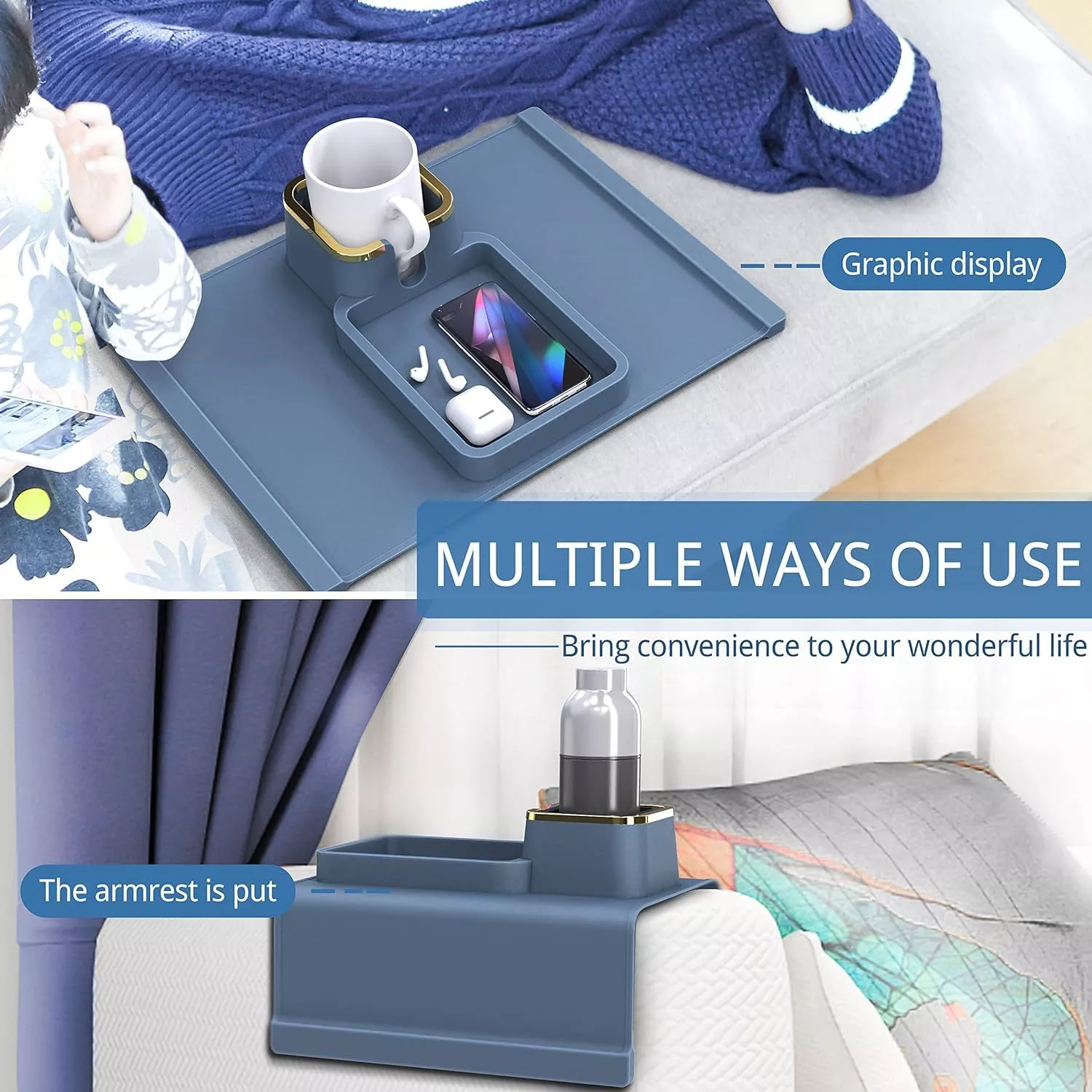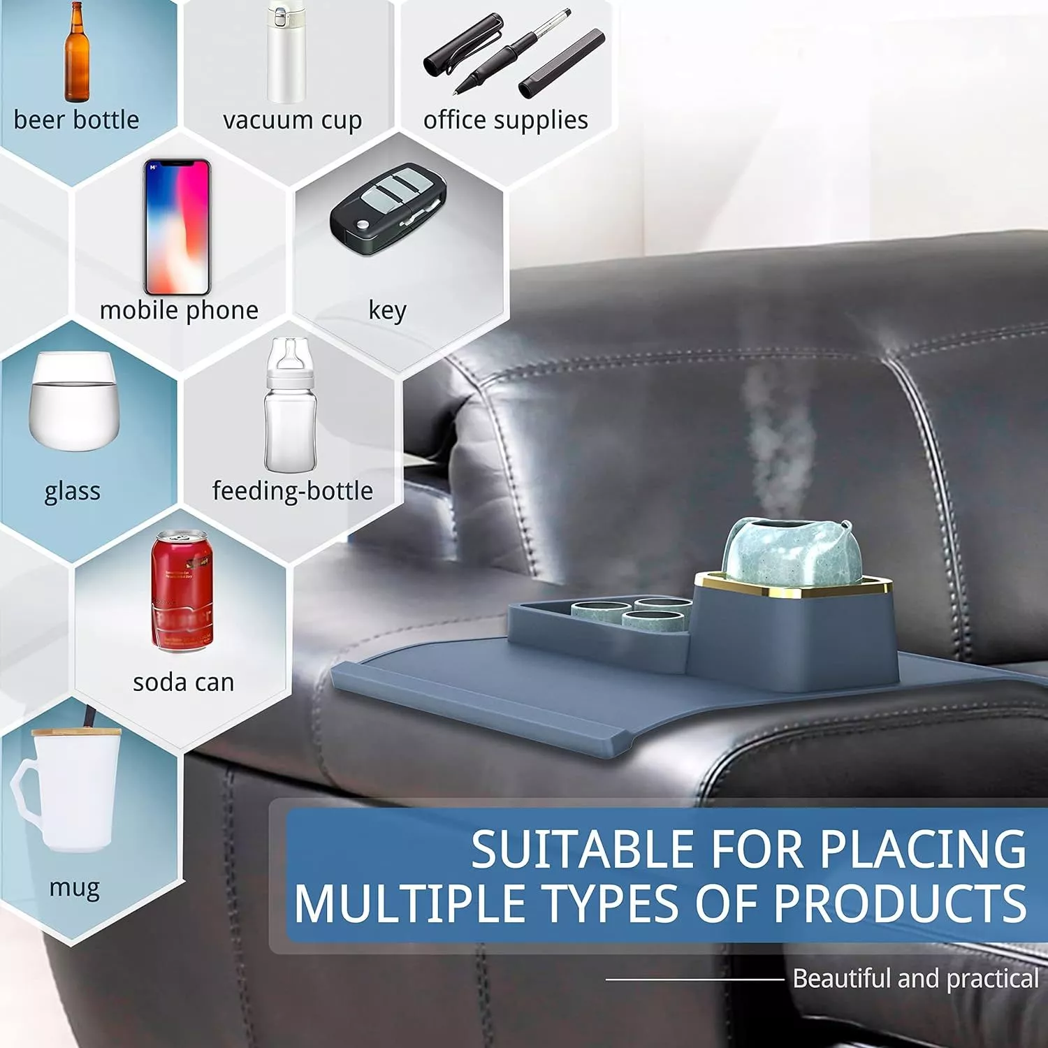 What makes this product special is its ability to blend functionality with style. It’s not just about holding your drink; it’s about enhancing your living experience. Use it to hold snacks during a game night, keep your remote control handy for quick access, or even as a safe spot for your phone while you unwind. It’s the little conveniences that make a big difference, and our sofa armrest organizer is here to prove it.