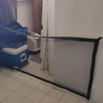 I was looking for a gate to put at the top of a staircase that is not a straight opening, but has an angled opening that a standard expansion gate would not work on. This gate fit perfect in that angle! It is lightweight gate and it is very easy to store when not in use – just take down completely and fold or roll up on side and attach it to the other side. You will not go wrong with the purchase of this gate.