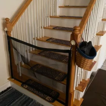 I have an elderly, deaf cat that gets into trouble, and I wanted to block her way into the 2nd floor. I measured my stairs and wanted to use it vertically, but the actual net turned out to be a bit shorter, than I thought. Now my cat actually can squeeze in, so it's not really suitable for cats.