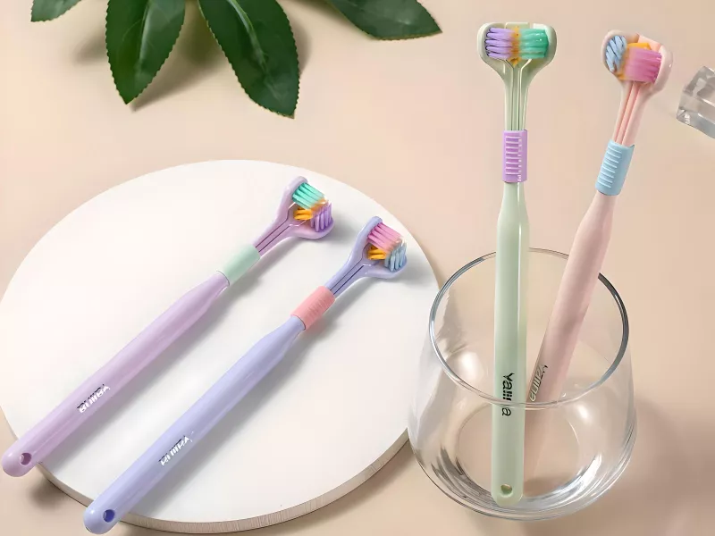 i recently started using this triple-sided toothbrush, and it has made a noticeable difference in my oral health. the ultra-fine bristles are incredibly soft, making brushing gentle on my gums while still providing a thorough clean. the triple-sided design is brilliant; it cleans all sides of my teeth simultaneously, saving time and ensuring a more comprehensive clean. the handle is ergonomically designed, making it comfortable to hold and easy to maneuver around my mouth. i’ve noticed that my teeth feel cleaner and my breath is fresher since i started using this toothbrush. it’s also helped reduce the sensitivity in my gums, which is a huge plus. cleaning the brush is easy, and it dries quickly, which is convenient. overall, i’m extremely satisfied with this toothbrush and would highly recommend it to anyone looking to improve their oral hygiene routine. it’s an excellent investment in dental health.